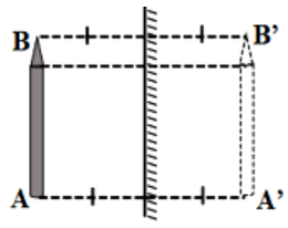 Cho vật sáng \(AB\) có dạng mũi tên cao \(1,5cm\) đặt song song với một gương phẳng