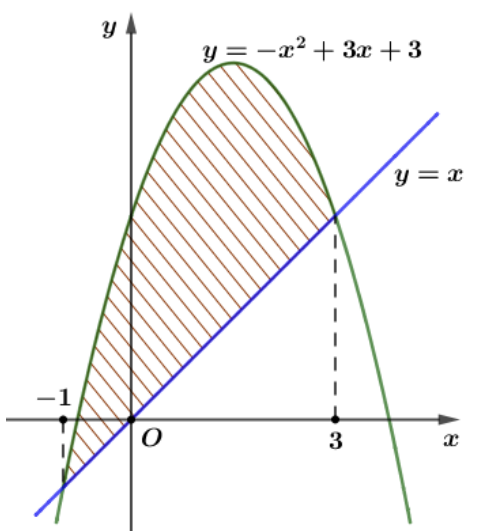 Diện tích hình phẳng (phần gạch sọc) trong hình sau