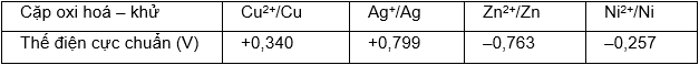 Cho bảng giá trị thế điện cực chuẩn của các cặp oxi hóa - khử như sau: