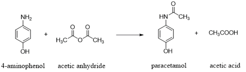 Paracetamol còn được gọi là acetaminophen, là một loại thuốc có tác dụng hạ sốt và giảm đau. Paracetamol (C8H9NO2) có thể tổng hợp trực tiếp từ 4-aminophenol (C6H7NO) và acetic anhydride (C4H6O3) theo phương trình như sau: