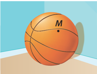 Bạn Bình đố bạn Nam tìm được đường kính của quả bóng rổ, biết rằng nếu đặt quả bóng ở một góc căn phòng hình hộp chữ nhật, sao cho quả bóng chạm với hai bức tường và nền nhà của căn phòng đó thì có một điểm \(M\) trên quả bóng với khoảng cách đến hai bức tường và nền nhà lần lượt là \(17\) cm, \(18\)cm, \(21\)cm. Bán kính quả bóng bằng bao nhiêu biết loại bóng tiêu chuẩn có đường kính nằm trong khoảng từ \(23\)cm đến \(24,5\) cm