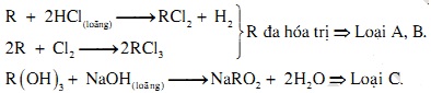Cho sơ đồ phản ứng sau: R + 2HCl (loãng) RCl2 + H2 2R + 3Cl2 2RCl3 R(OH)3 + NaOH (loãng)