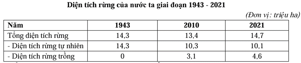 | a) Tổng diện tích rừng tăng liên tục từ năm 1943 đến năm 2021. |