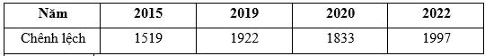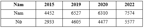 Cho bảng số liệu về thu nhập bình quân một lao động đang làm việc phân theo giới tính của nước ta giai đoạn 2015 – 2022 (Đơn vị: Nghìn đồng)