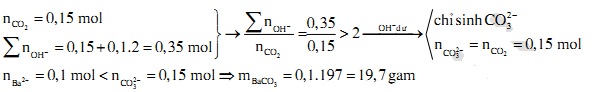 Hấp thụ hoàn toàn 3,36 lít khí CO2 (đktc) vào dùng dịch chứa 0,15 mol NaOH và 0,1 mol Ba(OH)2, thu được m gam kết tủa. Giá trị của m là
