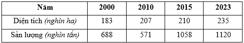 Cho bảng số liệu về diện tích và sản lượng lúa mì của Nhật Bản