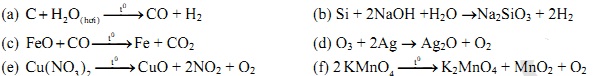 Cho các phản ứng sau: (a) C + H2O (hơi) (b) Si + dd NaOH (c) FeO + CO