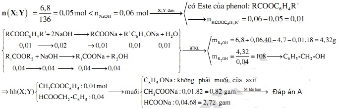Hai este X, Y có cùng công thức phân tử C8H8O2 và chứa vòng benzene trong phân tử. Cho 6,8 gam hỗn