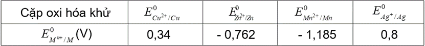 Cho giá trị thế điện cực chuẩn của một số cặp oxi hóa như sau: