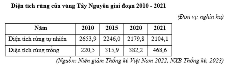 | d) Biểu đồ miền là dạng biểu đồ thích hợp nhất thể hiện sự thay đổi cơ cấu diện tích rừng ở Tây Nguyên giai đoạn 2010 - 2021. |