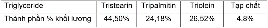 Một loại chất béo có chứa thành phần như sau: (Trong tạp chất không chứa