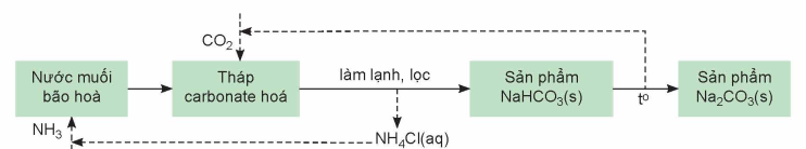 Trong một giai đoạn của quá trình Solvay có tồn tại cân bằng giữa các muối trong dung dịch:NaCl