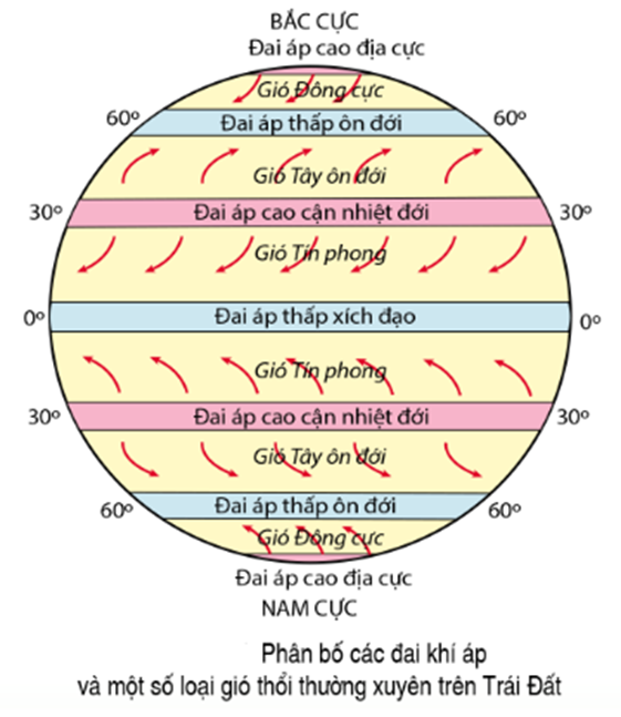 Dựa vào sơ đồ và kết hợp với kiến thức về gió, các đai khí áp trên Trái Đất.