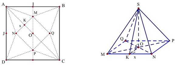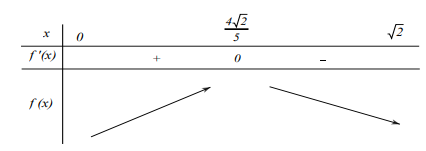 Gọi độ dài cạnh đáy của hình chóp là \(x\left( m \right)\). Tính thể tích theo x và khảo sát hàm số tìm giá trị lớn nhất.