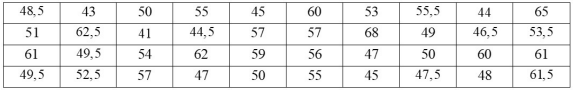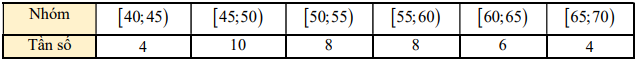 Ghép nhóm bảng số liệu trên thành các nhóm có độ rộng bằng nhau và nhóm đầu tiên là nửa khoảng \([40;45)\) thì khoảng biến thiên của mẫu số liệu ghép nhóm nói trên là
