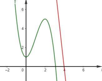 Một hòn đảo nằm trong một vịnh biển. Biết rằng đường cong tạo nên hòn đảo được mô hình hóa vào hệ trục tọa độ Oxy là một phần của đồ thị hàm số bậc ba \(f(x)\). Đơn vị trên hệ trục là \(100m\) Vị trí điểm cực đại là \(\left( {2;5} \right)\), vị trí điểm cực tiểu là \(\left( {0;1} \right)\). Mặt đường chạy trên một đường thẳng có phương trình \(y = 36 - 9x\). Người ta muốn làm một cây cầu có dạng là một đoạn thẳng nối từ hòn đảo ra mặt đường. Độ dài ngắn nhất của cây cầu là bao nhiêu mét? (làm tròn đến hàng phần trục)