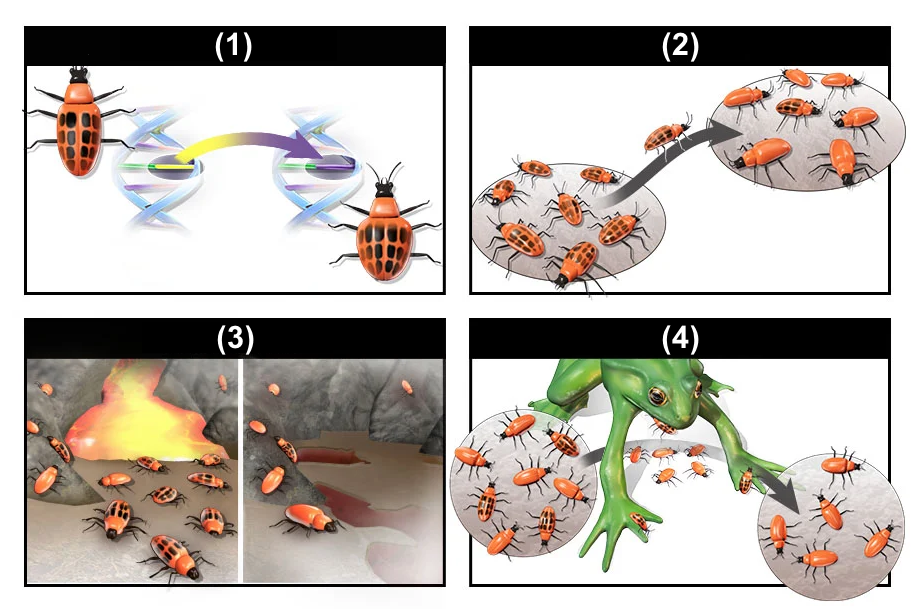 Quan sát hình:Gọi đúng tên các nhân tố tiến hóa tương ứng với mỗi