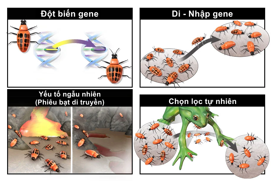 Gọi đúng tên các nhân tố tiến hóa tương ứng với mỗi hình: