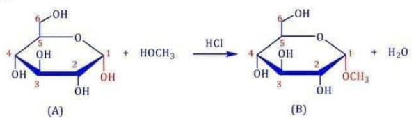 | b) Chất B có thể là hỗn hợp của methyl α-glucoside và methyl β-glucoside. | ||
