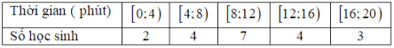 Tìm hiểu thời gian hoàn thành một bài tập ( đơn vị: phút) của một số học sinh thu được kết quả sau: