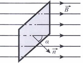 Công thức tính từ thông: \(\Phi = NBS.\cos \alpha ;\alpha = \left( {\overrightarrow n ,\overrightarrow B } \right)\)