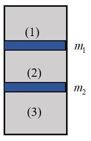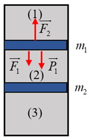 Trong một xi lanh kín đặt thẳng đứng có hai pit tông nặng chia xi lanh thành 3 ngăn (hình 1), mỗi ngăn chứa 1 lượng khí lí tưởng như nhau và cùng loại. Khi nhiệt độ trong các ngăn là \({T_1}\) thì tỉ số thể tích các phần là \({V_1}:{V_2}:{V_3} = 4:3:1\). Khi nhiệt độ trong các ngăn là \({T_2}\) thì tỉ số thể tích các phần là \({V_1}':{V_2}':{V_3}' = x:2:1\). Bỏ qua ma sát giữa các pit tông và xi lanh. Giá trị của x là? (làm tròn đến số thập phân thứ nhất sau dấu phẩy)