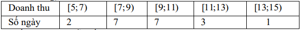 Doanh thu bán hàng trong 20 ngày được lựa chọn ngẫu nhiên của một cửa hàng được ghi lại ở bảng sau (đơn vị: triệu đồng):