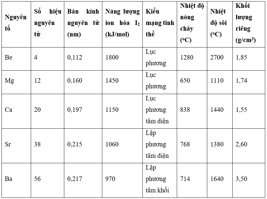 Ở các nguyên tố nhóm IIA, các hằng số và nhiệt độ nóng chảy không biến đổi theo một quy luật nhất định là do có kiểu mạng tinh thể không giống nhau