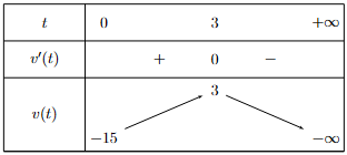| a) Hàm vận tốc của chất điểm là \(v(t) = - 3{t^2} + 18t - 15\). | ||