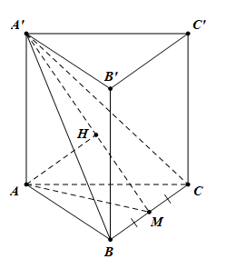 Khi đó \(AH \bot \left( {A'BC} \right) \Rightarrow d\left( {A,\left( {A'BC} \right)} \right) = AH\).