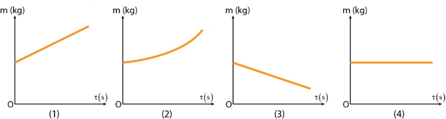Đồ thị nào sau đây biểu diễn mối quan hệ giữa khối lượng nước còn lại trong bình nhiệt lượng kế và thời gian của quá trình hoá hơi của nước?