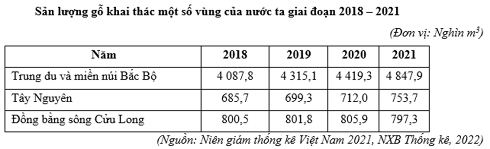 | b) Sản lượng gỗ khai thác ở Đồng bằng sông Cửu Long luôn lớn nhất. |