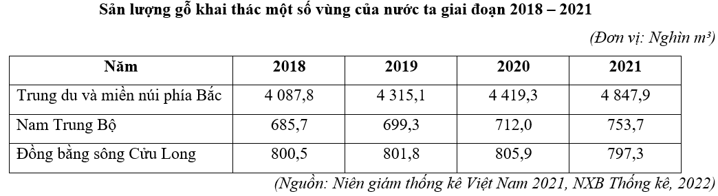| d) Sản lượng gỗ khai thác ở Đồng bằng sông Cửu Long lớn hơn Nam Trung Bộ. |