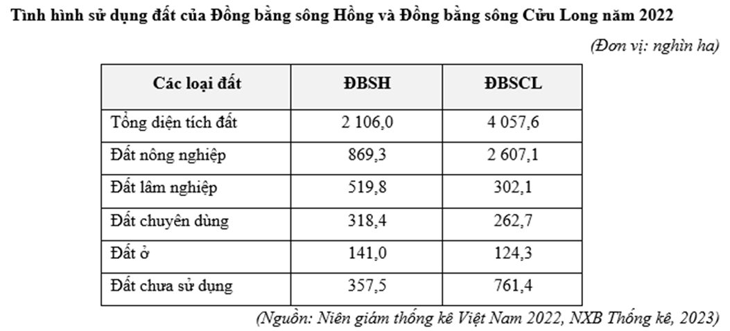 | d) Diện tích đất chưa sử dụng của ĐBSCL lớn gấp 2,12 lần ĐBSH. |