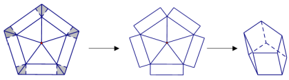 Bước 3: Gấp các hình chữ nhật để tạo thành khối lăng trụ ngũ giác đều (tham khảo hình vẽ).