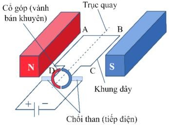 Hình vẽ bên cạnh mô tả mô hình động cơ điện. Một khung dây dẫn