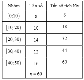 Cho bảng số liệu ghép nhóm như sau: a) Lập bảng phân bố tần số tích lũy
