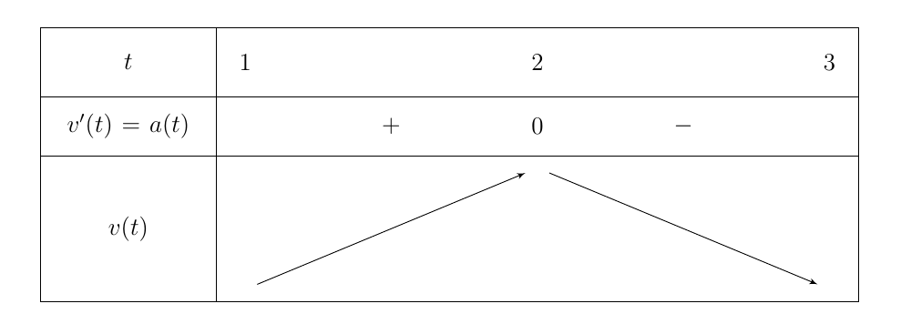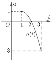 Gia tốc \(a(t)\)(\(t\)tính theo giây) của một vật chuyển động là một hàm số liên tục có đồ thị từ giây thứ nhất đến giây thứ ba như hình vẽ sau: