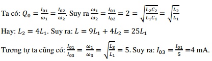Một tụ điện có điện dung C tích điện Q0. Nếu nối tụ điện với cuộn cảm thuần có độ tự cảm L1 hoặc với cuộn cảm thuần có độ tự cảm L2 thì trong mạch có dao động điện từ tự do với cường độ dòng điện cực đại là 20mA hoặc 10 mA. Nếu nối tụ điện với cuộn cảm thuần có độ tự cảm L3=(9L1+4L2) thì trong mạch có dao động điện từ tự do với cường độ dòng điện cực đại là
