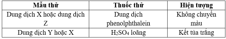 | d) Trộn Z với X hoặc Y đều thu được kết tủa trắng. |