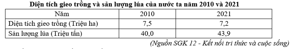 Cho bảng số liệu: Căn cứ bảng số liệu trên cho biết năng suất lúa của nước ta