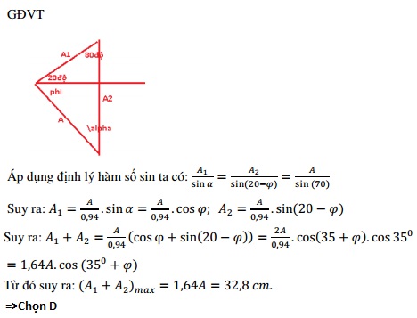. Giá trị cực đại của (A1 + A2) gần giá trị nào nhất sau đây?