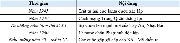 | c) Bảng thông tin trên đề cập đến sự suy yếu và đi đến sụp đổ của Trật tự thế giới hai cực I – an – ta. | ||