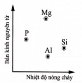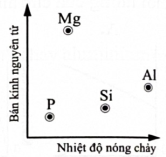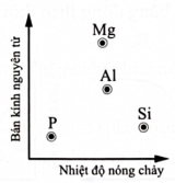 Đồ thị nào sau đây mô tả đúng mối tương quan giữa bán kính nguyên tử và nhiệt độ nóng chảy? Biết Mg (Z = 12); Al (Z = 13); Si (Z = 14); P (Z = 15)