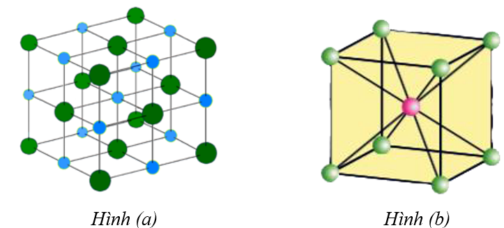 | a) Mô hình tinh thể muối ăn (mô hình a) được tạo thành từ hai mạng tinh thể lập phương tâm mặt lồng vào nhau. | ||