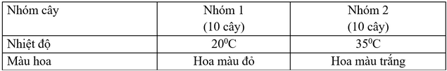 Một học sinh làm thí nghiệm trồng 20 cây hoa anh thảo (Primula sinensis) đều có kiểu gene AA ở các điều kiện nhiệt độ môi trường khác nhau. Kết quả thu được như bảng sau: