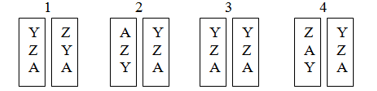Trong các hình sau, hình số mấy mô tả đúng trình tự các gene (Y, Z, A) nằm trên cặp NST tương