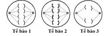 Hình sau mô tả quá trình phân bào của 3 tế bào. Phát biểu nào sau đây