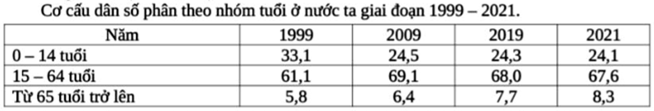 Cho bảng số liệu (Đơn vị: %): Hãy cho biết, số dân trong nhóm 15 – 64 tuổi