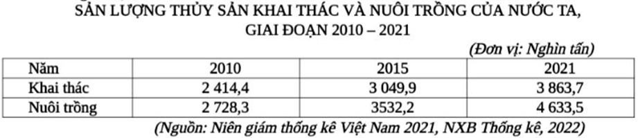 Cho bảng số liệu: Theo bảng số liệu, cho biết sản lượng thủy sản nuôi trồng năm 2021